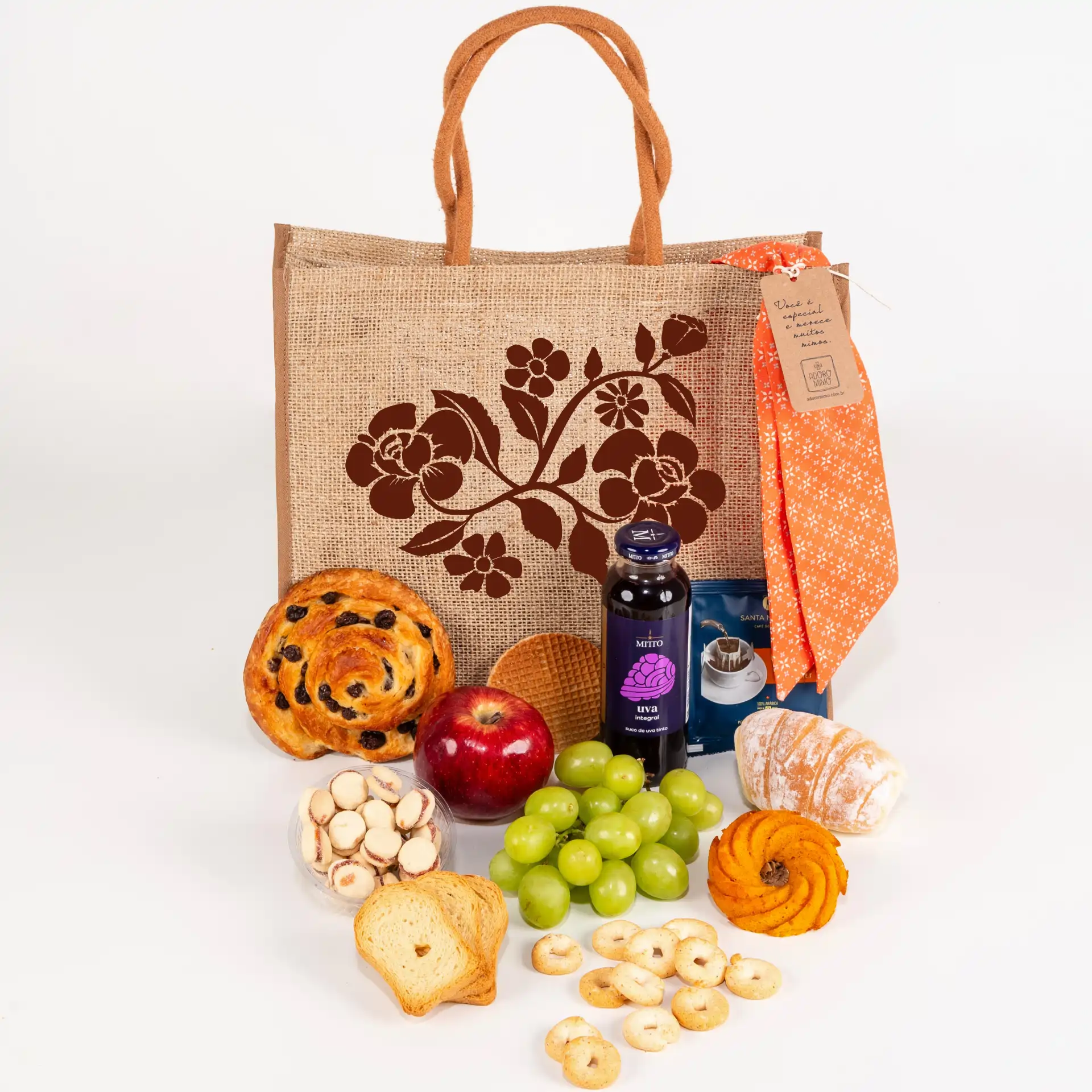 NOVIDADE!!! 🧡🧡🧡Que tal presentear com um Café da NOVIDADE!!! 🧡🧡🧡Que tal presentear com um Café da Manhã numa embalagem exclusiva Adoro Mimo?Um presente perfeito para alguém muito especial!A bolsa com Café da Manhã Individual é um presente muito desejado. Uma ecobag de juta natural com alças, recheada com iguarias que irão causar deliciosas surpresas logo no início do dia. Uma excelente opção para oferecer a alguém que você guarda no coração, seja o familiar ou amigo que está comemorando aniversário, um funcionário que atingiu as metas do mês ou aquele cliente que vem realizando bons negócios com você.Pedidos direto pelo site